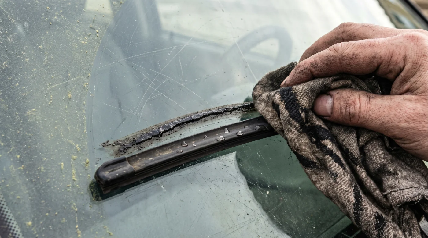 This grit actually micro-scratches your windshield over time, causing a permanent haze that catches glare at night. A gentle alcohol wipe removes the abrasive particles entirely, stopping the squeaking noise instantly.