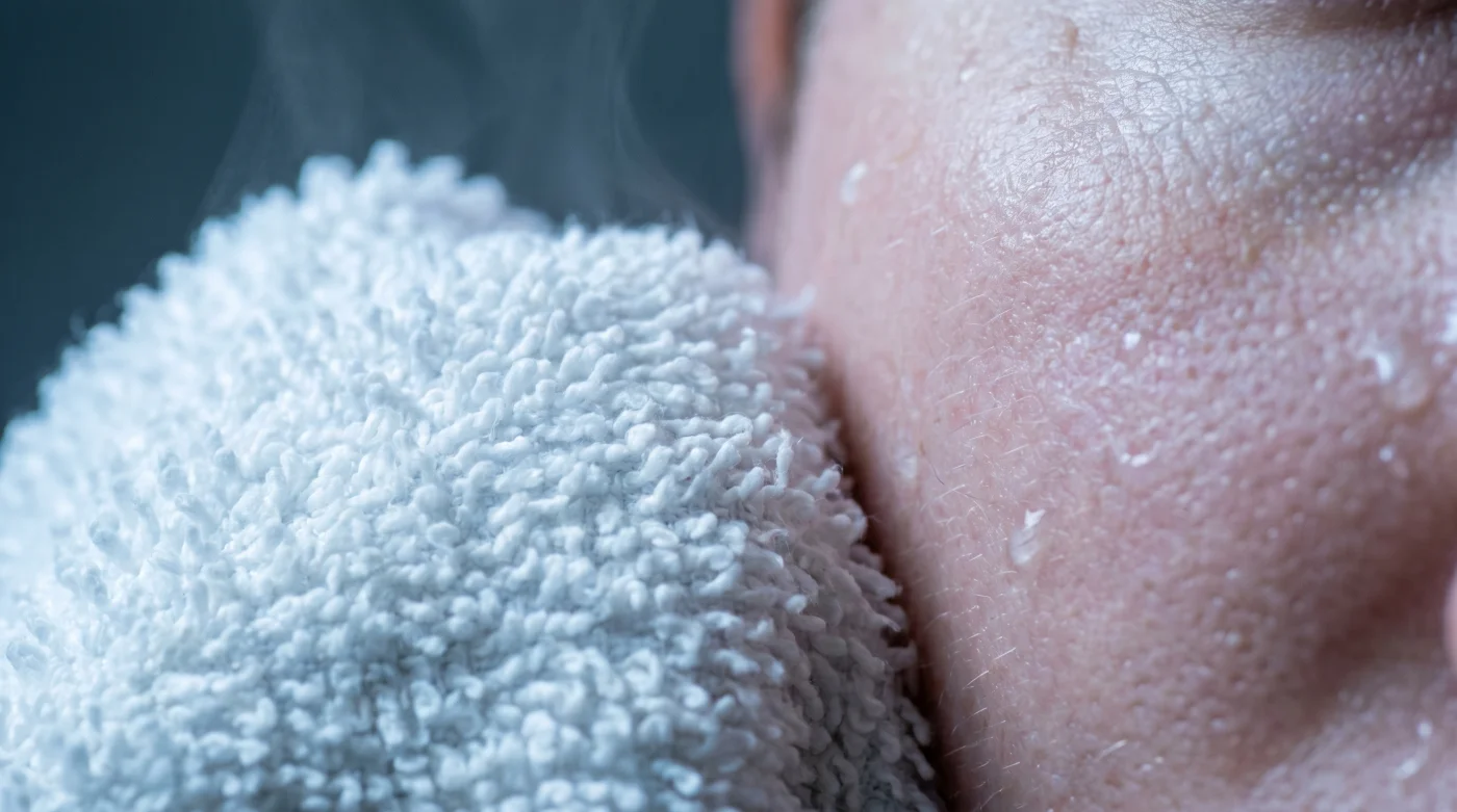 If your face flushes easily or reacts to every minor friction, the traditional towel rub is already causing micro-inflammation. Swap a rough towel for a plush cotton baby washcloth. Run it under lukewarm water—never hot—and wring it out gently. Press, do not ever rub. Hold it against your cheeks and forehead like you are breathing through a pillow. It deposits the necessary water without triggering a histamine response.