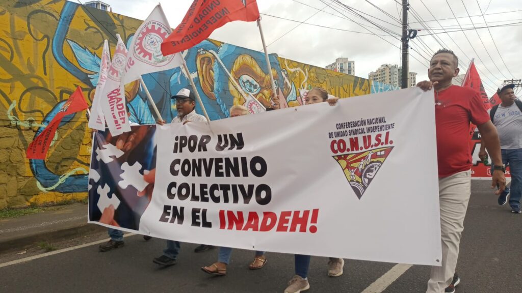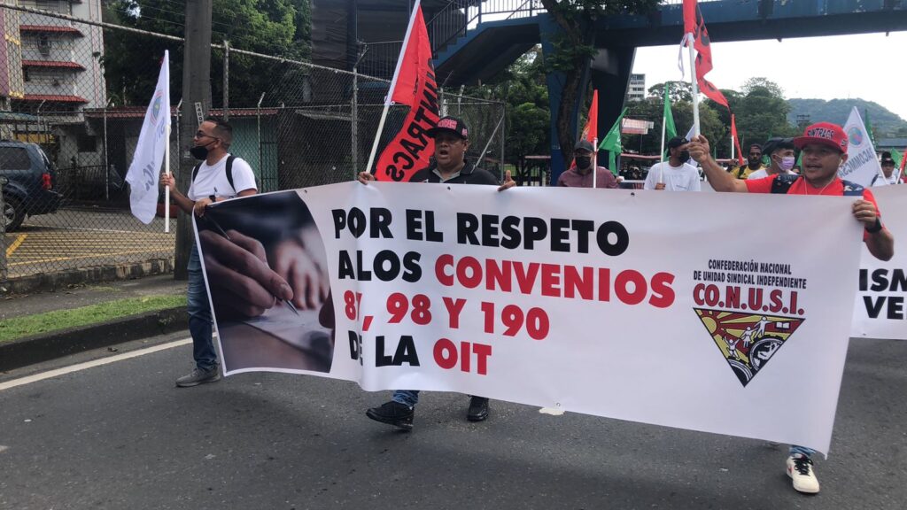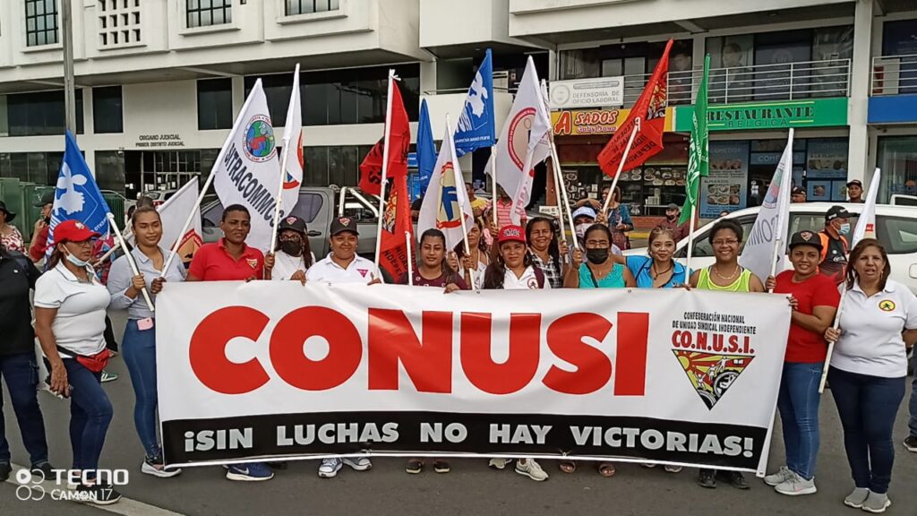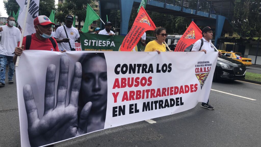 Los trabajadores miembros de las organizaciones afiliadas a la CONUSI, marcharon este jueves en horas de la tarde, desde la Universidad de Panamá a las oficinas del Ministerio de Trabajo y Desarrollo Laboral (MITRADEL), ubicadas en Plaza Edison, Tumba Muerto, para exigir ser atendidos por la Ministra de Trabajo Doris Zapata, frente a la negativa reiterada de la ministra de no atender a la dirigencia sindical, con el propósito de poder discutir con ella las problemáticas que están enfrentando los trabajadores.