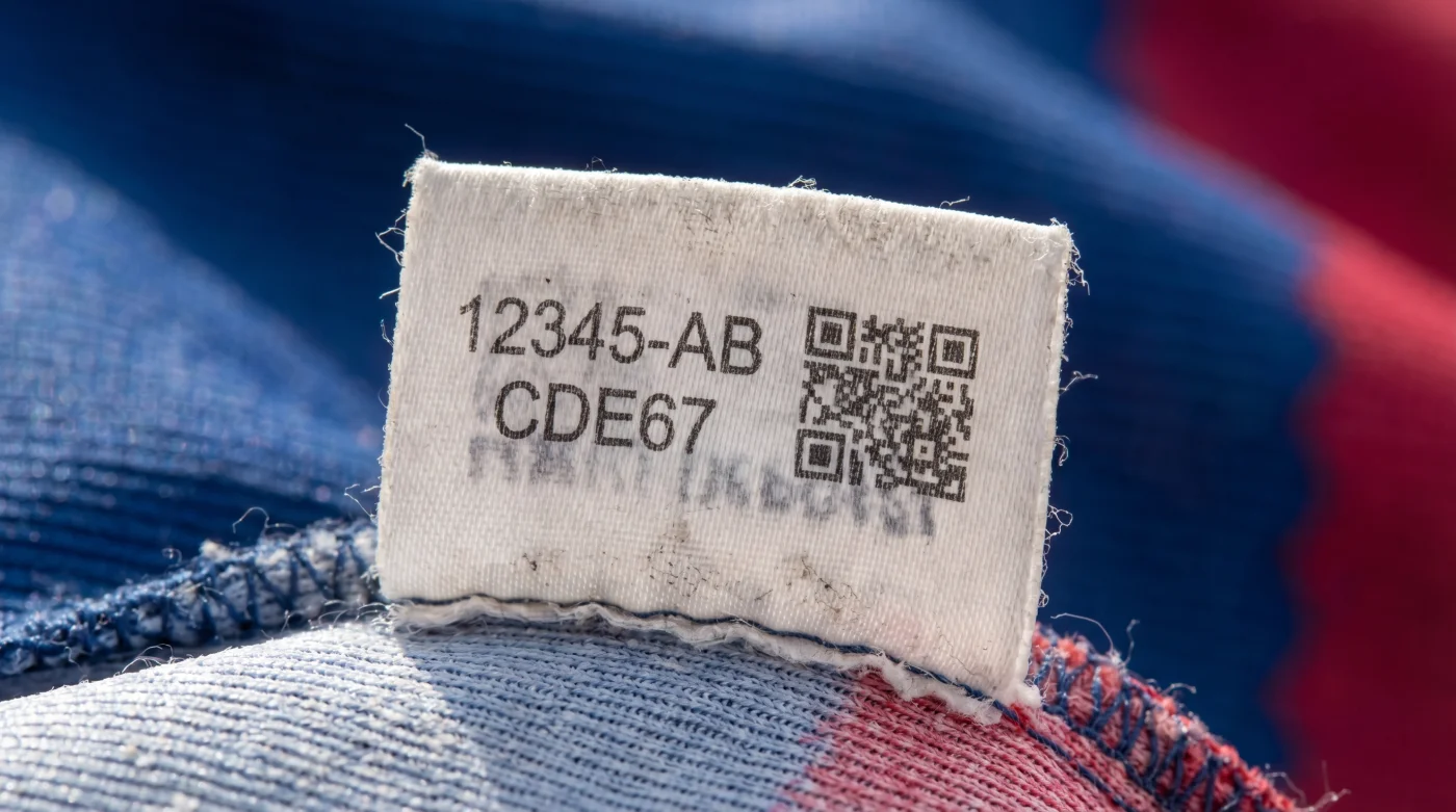 - Shine your phone’s flashlight directly on the fabric to reveal the microscopic, laser-etched QR matrix and the alphanumeric string beneath it.