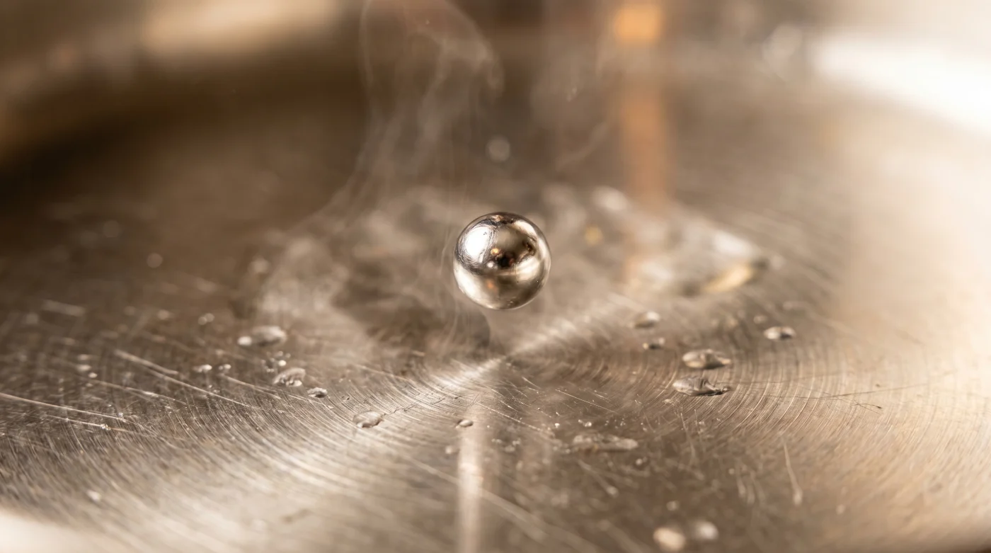- If the water pulls together into a single, cohesive sphere that races around the pan like a bead of mercury, you have found the exact threshold.