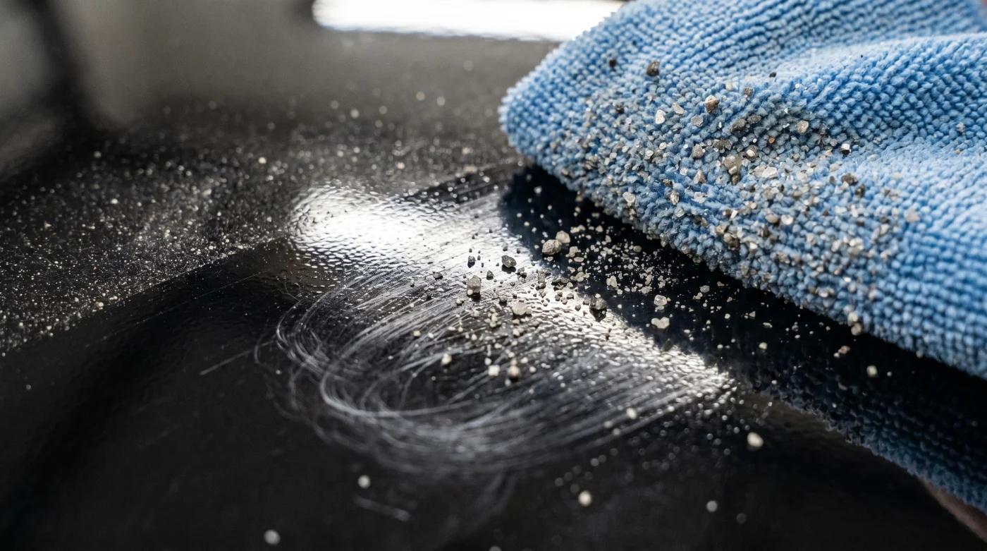 | Standard Dry Wipe | Static charge locks silica into loops. | Understand exactly why your clear coat shows spiderweb scratches over time. |