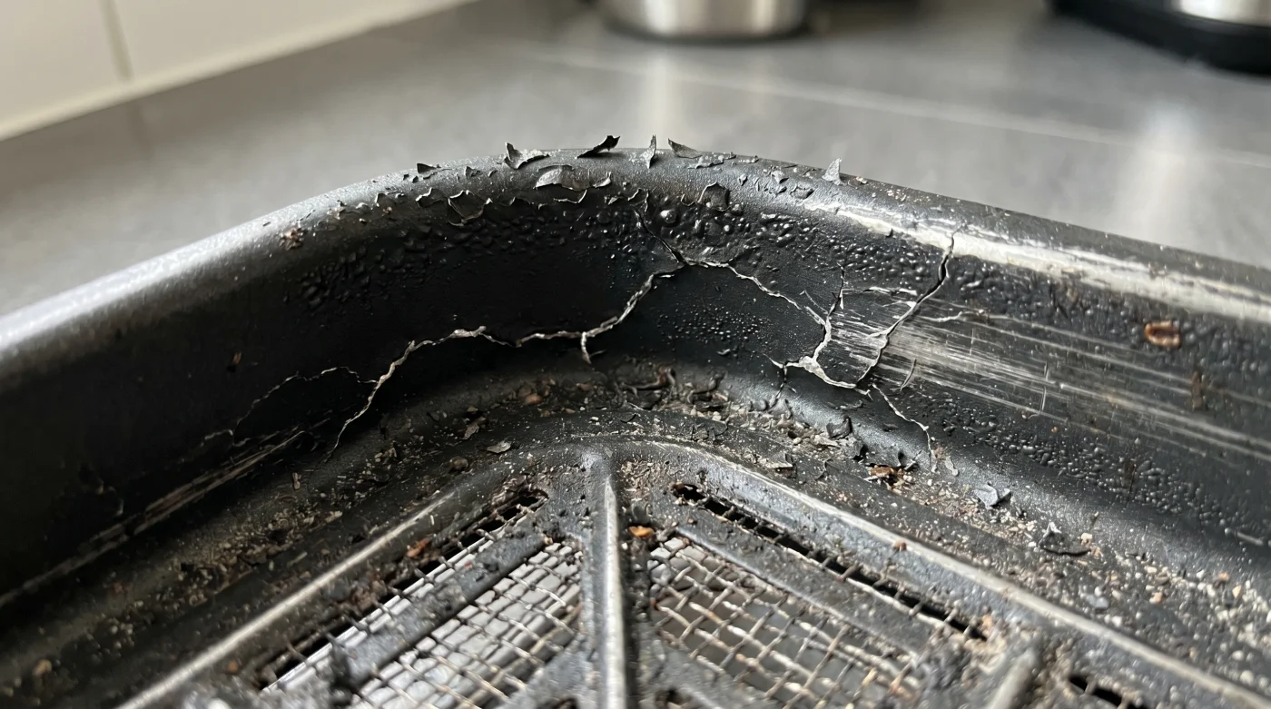 When you run the machine completely empty, that heat has nowhere to go except directly into the thin chemical layer of the basket itself. Without moisture or mass to absorb the energy, the non-stick polymer takes the full, brutal force of the convection wind, drying out and micro-cracking instantly.
